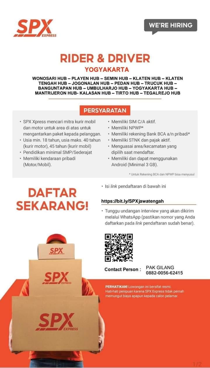 Membuka pendaftaraan untuk bagian Kurir Rider Motoris dan Mitra Driver :